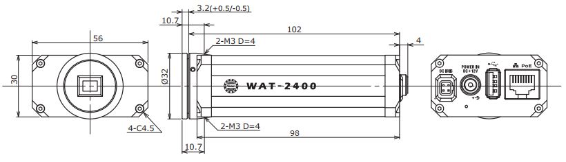 - Schnittstellen: RJ45 (10BASE-T, 100BASE-TX), USB (Hogh Speed / Full Speed), Auto Iris, Power in