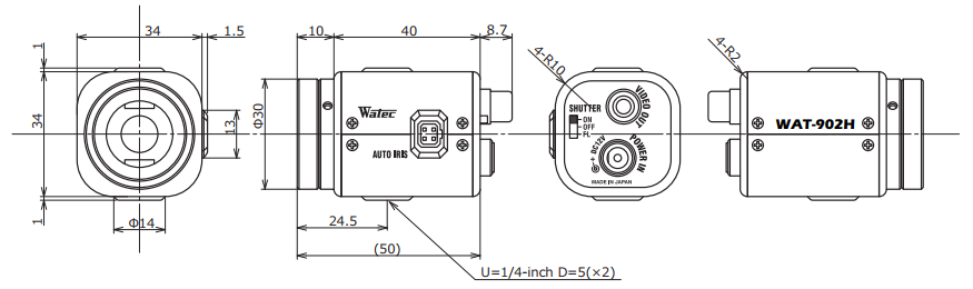 Die Watec WAT-902H ist eine besonders kompakte und leichte CCD-Kamera. Durch den Sony EXview CCD erreicht die Kamera eine sehr hohe Lichtempfindlichkeit. Wichtige Parameter wie Shutter, AGC, Gamma und BLC lassen sich direkt an der Kamera manuell einstellen.