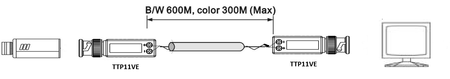- Videoübertragung über z.B. CAT-5 Netzwerkkabel oder andere verdrillte Leitungen