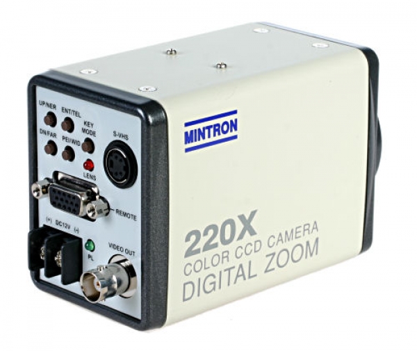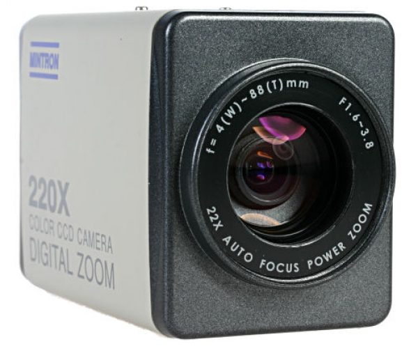 Kamera mit integriertem Zoomobjektiv. 22-fach optischer und 10-fach Digitalzoom. Fernsteuermöglichkeit über Kontakte oder RS232 Schnittstelle. Parametereinstellung über On Screen Display. Autofocus, Negative Image, Image reverse, Frame Integration usw...